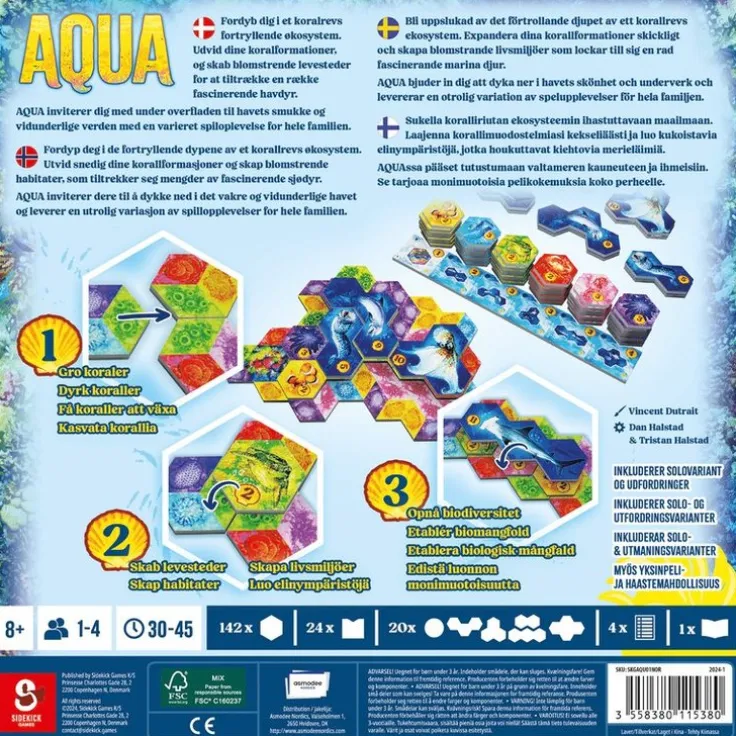 Fördjupa dig i det förtrollande djupet av ett korallrevs ekosystemExpandera klokt dina korallformationer och skapa blomstrande livsmiljöer som lockar en mängd fascinerande havsdjur.Dyk in i havets skönhet och under. Spelet har flera nivåer av spel, allt från mycket lätt till mer avancerad. Dessutom ingår ett solo- och ett utmaningsläge.Aqua har ett otroligt utbud av spelupplevelser, vilket gör den perfekt för hela familjen.