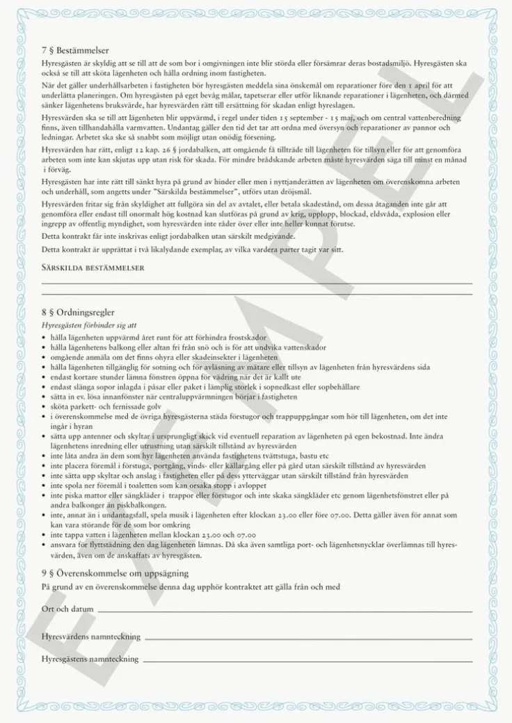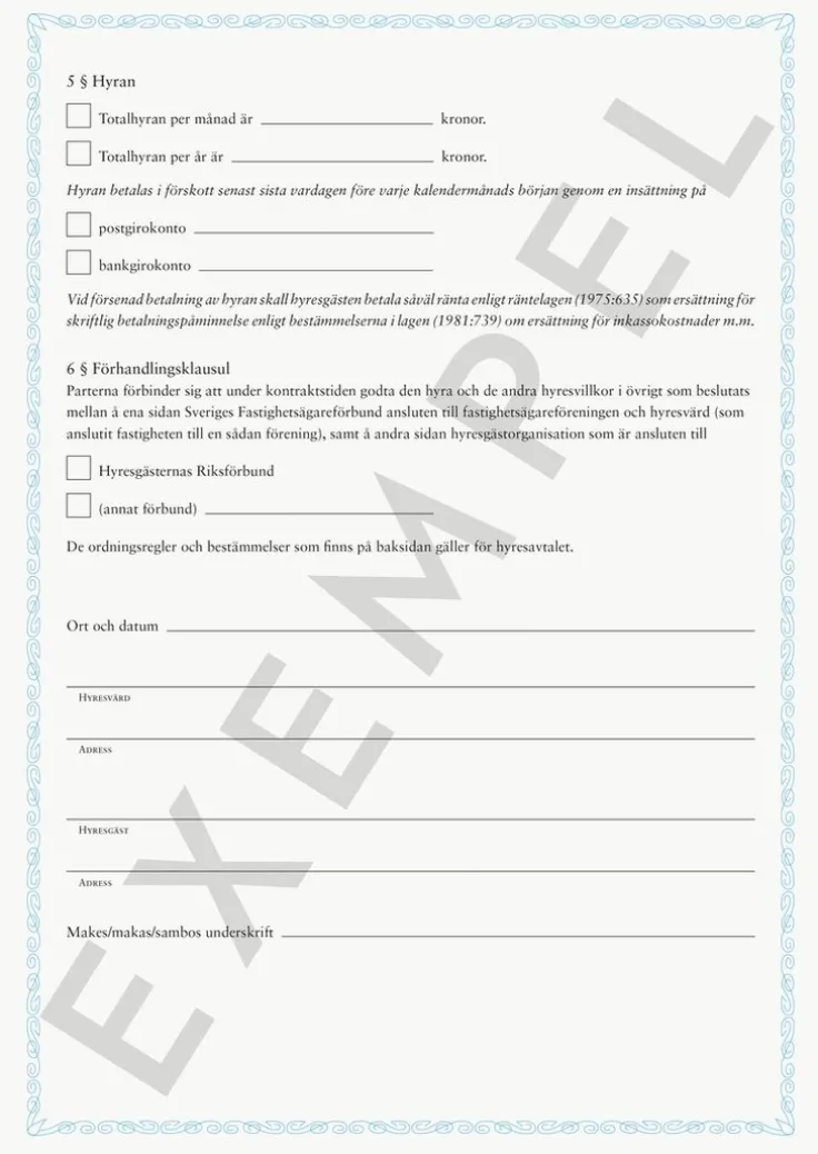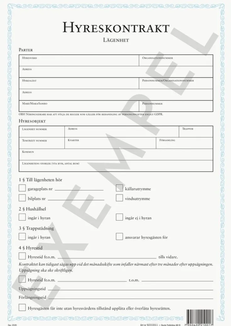 Blankett Hyreskontrakt lägenhet inkl borgensförbindelse