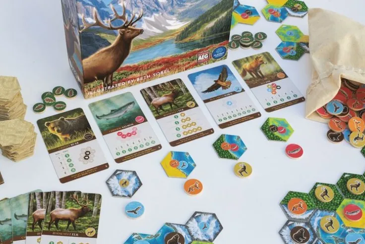 Res till den nordvästra delen av Stilla havet där du tävlar om att bilda det mest balanserade ekosystemet i Cascadia! Det är enkelt: välj en serie brickor/markörer och placera dem i ditt växande ekosystem. Få poäng genom att uppfylla målen för vilda djur och skapa de största habitatkorridorerna. Tack vare de olika målen blir varje parti i Cascadia en ny utmaning som du försöker lösa.