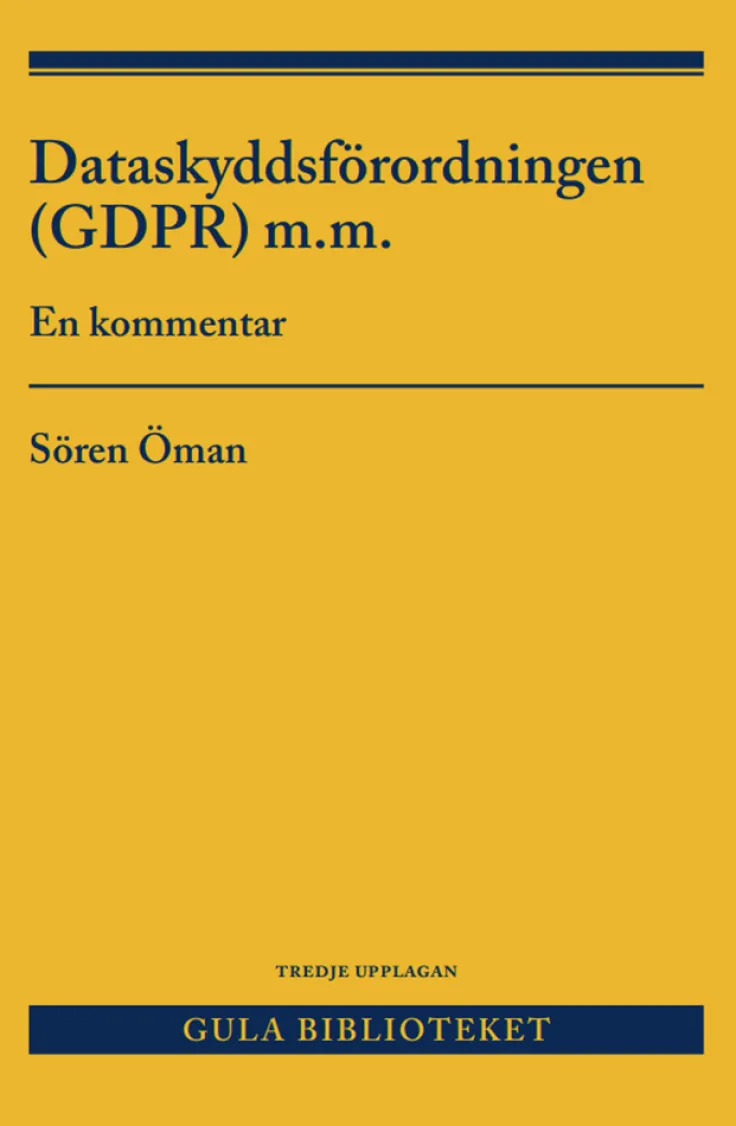 Detta är en omfattande kommentar till EU:s dataskyddsförordning (2016/679) – GDPR. Förordningen kommenteras artikel för artikel på traditionellt sätt. Även den kompletterande svenska s.k. dataskyddslagen (2018:218) kommenteras paragraf för paragraf. I verket finns också en utförlig kommentar till bestämmelsen om s.k. dataskyddssekretess i 21 kap. 7 § offentlighets- och sekretesslagen (2009:400).