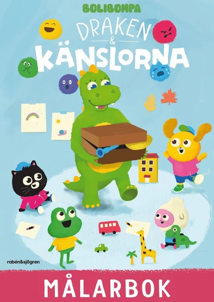 Härliga och tydliga motiv att färglägga. Baserade på den populära Bolibompa-serien om Draken och känslorna. Passar för alla åldrar.