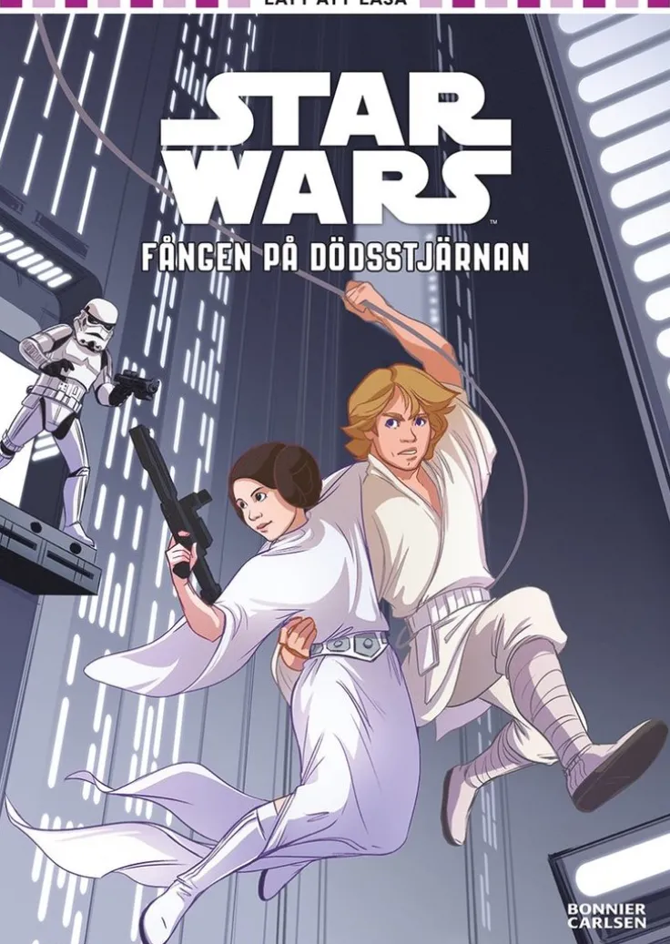 För alla Star Wars-fans: Boken återberättar i lättläst format början av episod IV, ”Nytt hopp”. Tillsammans med sina droider färdas Luke Skywalker och Obi-Wan Kenobi med smugglaren Han Solo och hans medhjälpare Chewbacca. När deras skepp Millenium Falcon fångas på Dödsstjärnan upptäcker de att även Leia är fången ombord. De iscensätter en vågad flyktplan, men blir snart varse att den fruktade Darth Vader är ombord.