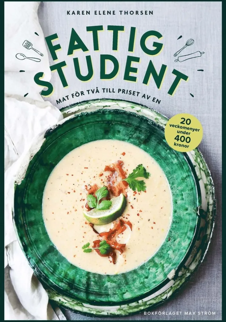 I denna användbara kokbok hittar du 20 veckomenyer för två personer från Instagramkontot @fattig.student. Ingen av menyerna kostar över 400 kronor men innehåller allt du behöver för en balanserad kost. Det finns även inköpslistor med billiga basvaror, tips för att undvika matsvinn och massor av annat för dig som vill vara ekonomisk, äta bra mat och bli mätt och belåten.