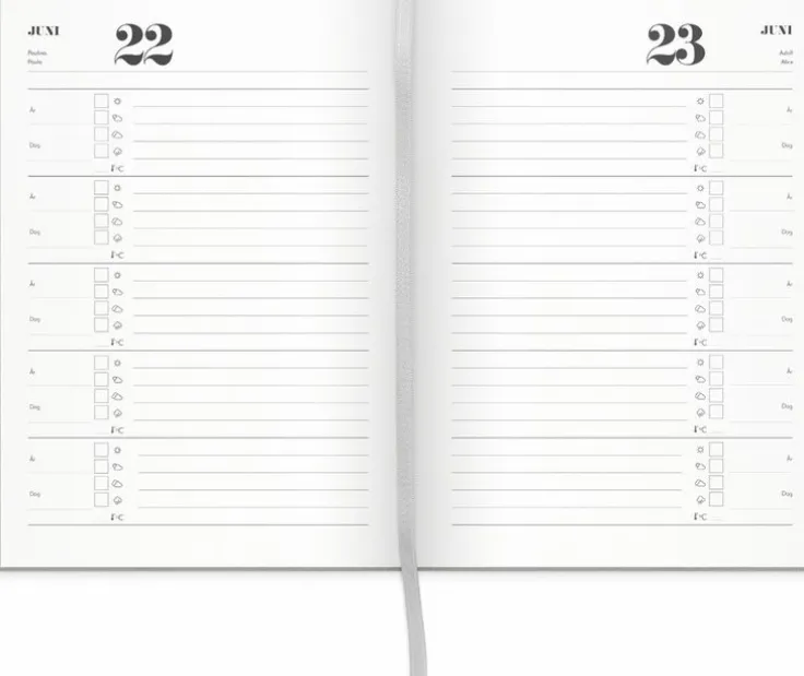5-årsdagbok i A5-format med hårda pärmar i linnetextil. Femårsdagboken har förtryckta, årsneutrala blad där du skriver några rader om dagen i fem år. Samla det du vill minnas från livet och vardagen, meningarna blir snabbt en berättelse om just ditt liv.Förtryckta avsnitt för varje dag.Årsneutral.376st 100 g linjerad sidor.FSC®-certifierad.En perfekt årsdagbok för fem år i ditt liv!Format: A5. Omslag: Linnetextil. Inbunden. Detaljer: Märkband. Antal sidor: 376. Pappersvikt: 100 g. Miljöinformation: FSC®.