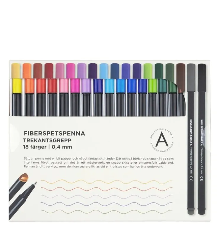 Fiberspetspennorna ingår i Akademibokhandelns egen kollektion – Kollektion Stora A.