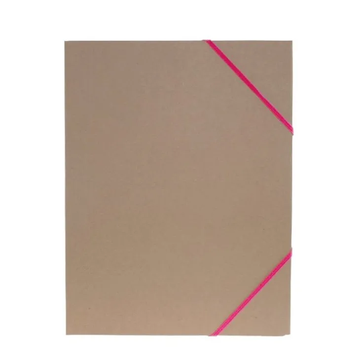 3-fliks kraftfärgad gummibandsmapp av 100% återvunnet papper! Här med rosa band.