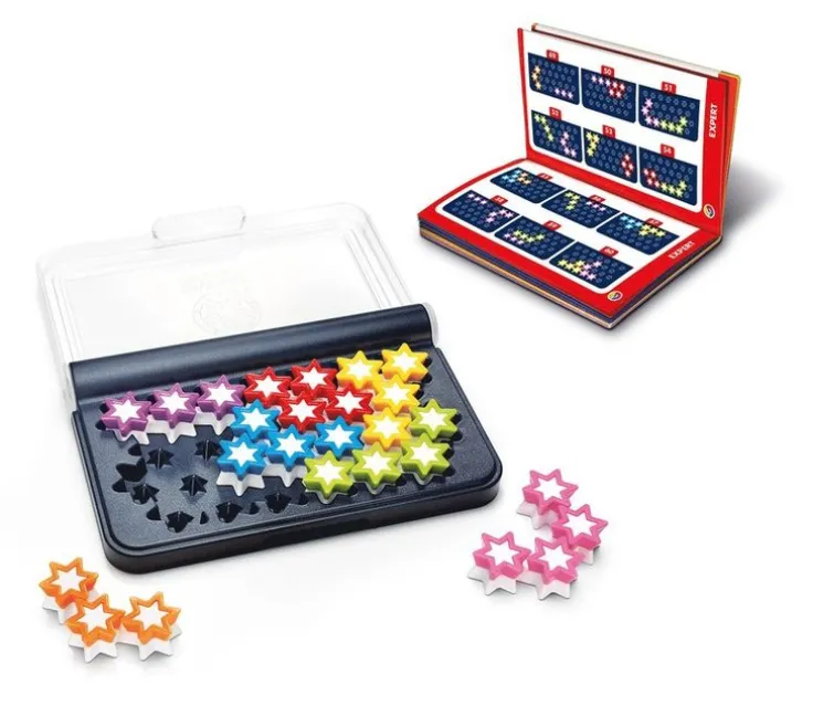 I det logiska spelet IQ-Stars måste du placera alla 7 stjärnorna på spelbrädet. IQ-Stars från SmartGames består av 120 olika varianter, allt från enkla till extremt svåra. Spelet passar för 6 år och äldre.