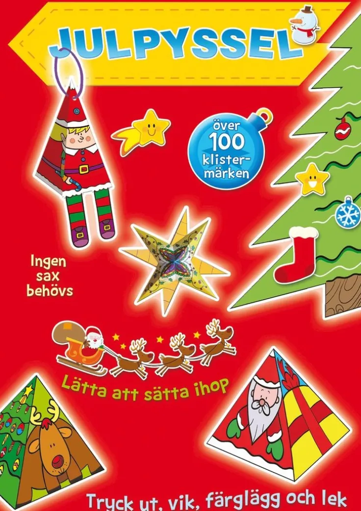 Julpyssel-Låt barnen vara med och göra juldekorationerna i den här färgglada boken med förstansade figurer som är enkla att sätta ihop och över 100 klistermärken -det blir en mysig pysselstund.