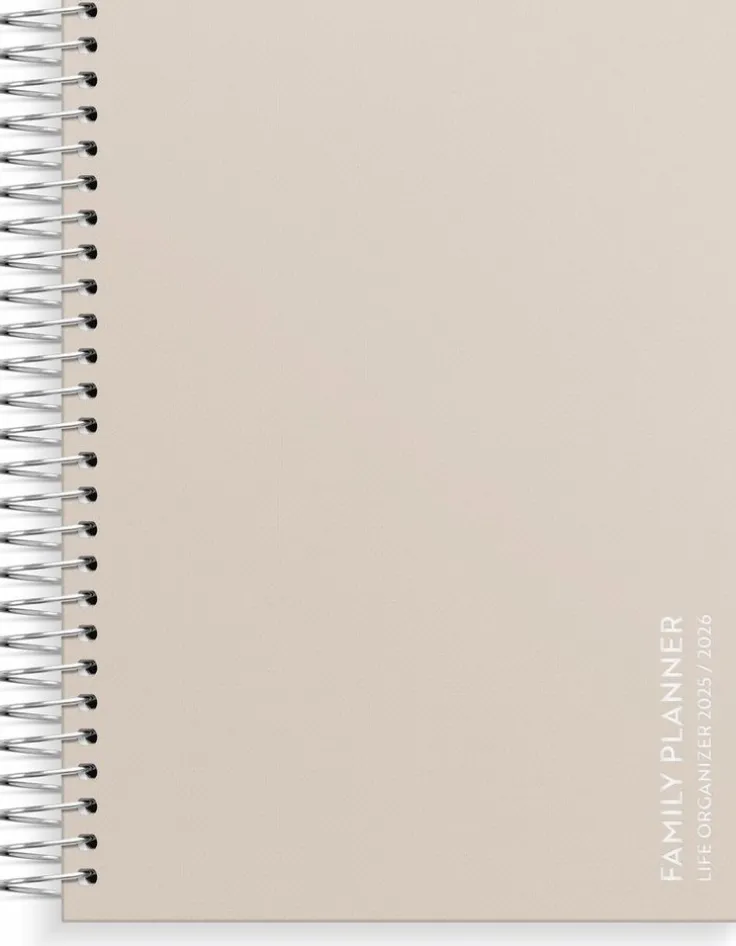 Familjelivet gjort enkelt! Att hålla reda på vad alla i familjen gör varje dag är inte en enkel uppgift. Med Life Organizer Family får du nyckeln som kan hjälpa dig organisera alla måsten, aktiviteter och kom ihåg. I ett stilrent och neutralt omslag är kalendern utformad med sidor som innehåller check-listor, familjens mål och tydliga uppslag för både veckor och månader med plats för att skriva ner varje familjemedlems aktiviteter. Tre stycken stickersark ingår.Kalender 25/26 från Burde. Format: A5. Layout: Stående. Vecka/uppslag. Kalendarium: 2025-06-23 – 2026-06-28. Omslag: Kartong med struktur. Spiralbunden. Detaljer: Pappersficka. Innehåll: Checklistor, Familjens mål, Månadens mål, Månadsöversikt, Anteckningssidor, Stickersark, To-do, Trackers, Årsöversikter, Årsplan. Antal sidor: 176. Miljöinformation: FSC®.