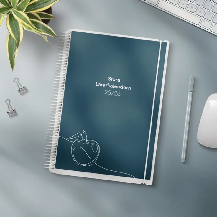 En komplett lärarkalender i ett större format, så att du får gott om plats att planera! Veckouppslaget har timindelning kl 8-17 måndag till fredag, men innehåller även plats för lite helgplanering och övriga anteckningar. Utöver det så finner du bland annat schema, kontaktlista, elevförteckning, och projektplan. Kalendern ger dig även möjlighet till reflektion för att se över utmaningar och framgångar i din vardag som lärare.Kalendern har två olika framsidor att byta mellan eller om du vill använda ditt eget motiv.Kalender 25/26 från Burde. Format: B5 (176×250 mm). Layout: Stående. Vecka/uppslag. Timindelning 8-17. Kalendarium: 2025-06-02 – 2026-08-30. Omslag: PP-plast. Spiralbunden. Detaljer: Gummiband. Plastfickor. Innehåll: Kontaktlista, Anteckningssidor, Schema, Elevfrånvaro, Elevförteckning, Årsplaner. Antal sidor: 208. Miljöinformation: FSC®.