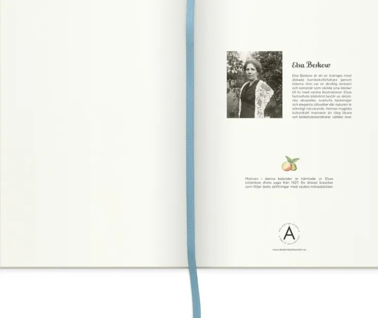 Denna ljuvliga kalender är inbunden och har ett liggande format med veckouppslag, 160 sidor och ett praktiskt märkband. Stig rätt in i Elsa Beskows magiska värld – 365 dagar om året! Omslaget är hämtat ur Elsas bilderbok Årets saga från 1927. En älskad klassiker som följer årets skiftningar med vackra månadsbilder. Kalendarium: 2024-12-09 – 2026-01-04. A5-format. 160 sidor. FSC®-märkt papper, ett bättre val för dig och vår värld. Elsa Beskow är en av Sveriges mest älskade barnboksförfattare genom tiderna. Hon var en skicklig skribent och konstnär som väckte sina böcker till liv med vackra illustrationer. Elsas fantasifulla bildvärld består av detaljrika akvareller, svartvita teckningar och eleganta silhuetter där naturen är ständigt närvarande. Hennes magiska kulturskatt inspirerar än idag läsare och bilderbokskonstnärer världen över. Nu i ett unikt samarbete med Akademibokhandeln för vår egen kollektion – Kollektion Stora A.