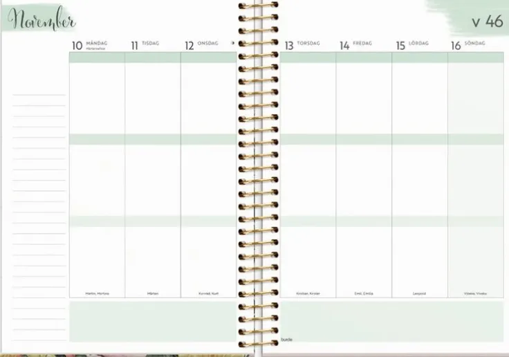- Layout: Vecka/Uppslag