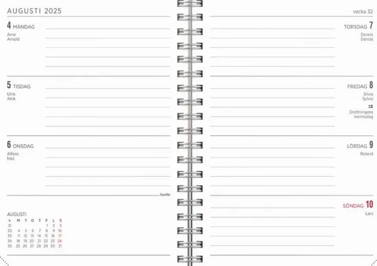 - Layout: Vecka/Uppslag