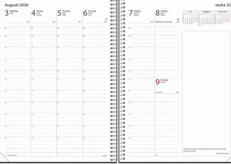 - Layout: Vecka/uppslag
