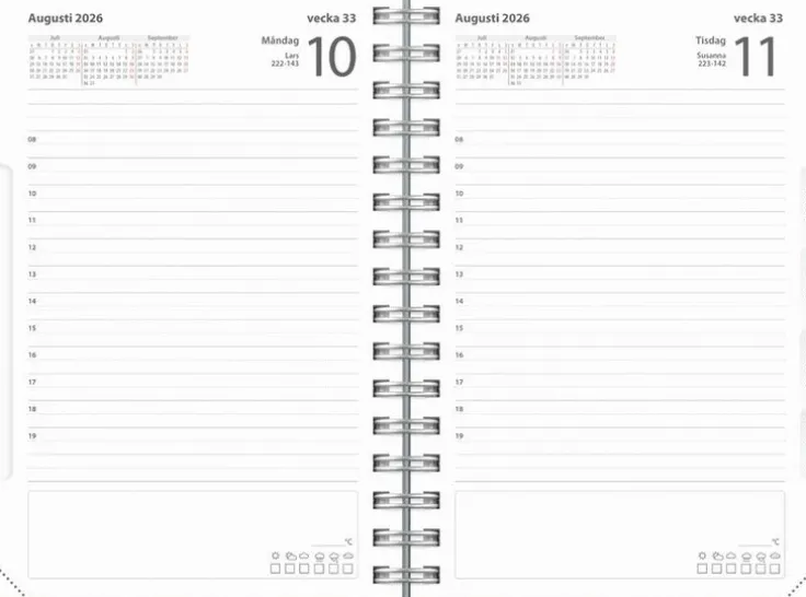 Detta textilomslag med det präglade årtalet ger ett stilrent och elegant intryck som passar året om. Inlagan har en dag per sida och timindelning 08-19. Innehåller årsplaner och har ett urstansat månadsregister för att lättare hitta till rätt månad. Genom att sortera dina tankar kan du lära dig mer om dig själv, få enklare att hitta lösningar på problem och dessutom bättra på minnet.>Kalender 2026 från Burde. Format: 135×205 mm. Layout: Dag/sida. Timindelning 8-19. Kalendarium: 2026-01-01 – 2026-12-31. Omslag: Linnetextil. Spiralbunden. Innehåll: Kyrkliga helgdagar, flaggdagar, helgdagar/aftnar, månfaser, namnsdagar, internationella helgdagar översikt, temadagar/händelser, årsöversikt/årsöversikter, årsplan/årsplaner, urstansat månadsregister. Antal sidor: 400. Miljöinformation: FSC®.