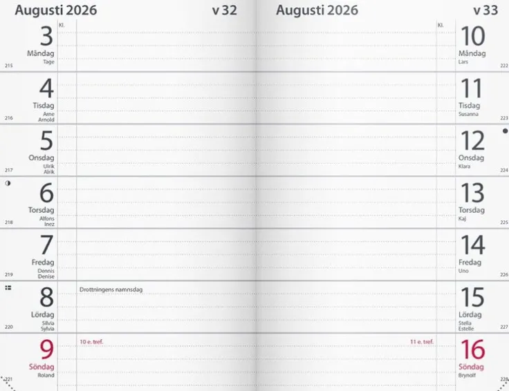 Kalender 2026 från Burde. Format: 85×127 mm. Layout: Liggande. Två veckor/uppslag. Kalendarium: 2025-12-22 – 2027-01-03. Omslag: Kartong. Häftklamrad. Innehåll: Kyrkliga helgdagar, flaggdagar, helgdagar/aftnar, månfaser, namnsdagar, internationella helgdagar översikt, temadagar/händelser, årsöversikt/årsöversikter, årsplan/årsplaner,. Antal sidor: 64. Miljöinformation: FSC®.