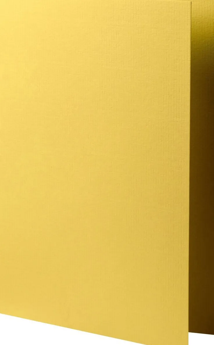 5-pack öppningsbara kort i A5-format med en stående design, vilket innebär att kortet öppnas längs långsidan. Korten har en strukturerad yta och är producerade av ett syrafritt och PH-neutralt papper från europiska tillverkare. Papperix har även kuvert (C5) i matchande färger som passar till korten, för alternativet att kunna skapa en enhetlig look. Eller så kan man mixa och matcha för ett mer kreativt uttryck. A5 storleken passar bra som ett större gratulationskort till välvalt tillfälle eller som en inbjudan som man vill ska stå ut från mängden. Färg: Gul, starkt gul färg. Ytvikt: 220 g, Mått: 148×210 mm.
