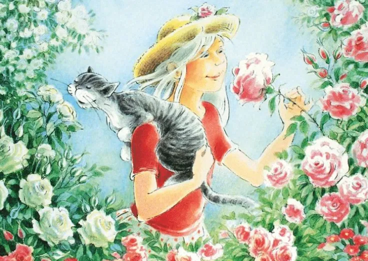 Underbar illustration av Pomona och rosor av Gunilla Hansson