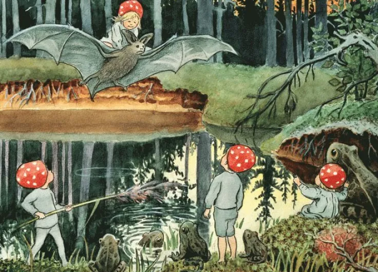 Tomtebobarnen vid tjärn av Elsa Beskow.