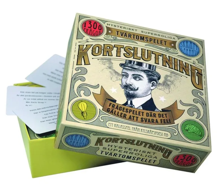 Kan man vinka till någon man inte känner? Är Pasta Carbonara förbjudet i Ryssland? Måste man sjunga i duschen? Kan en tävlingsmänniska förlora? Hjälper halstabletter mot nackspärr? Eller brukar grannar uppskatta högljudda fester mitt i veckan? I Kortslutning kastar vi oss över fler än 1300 tokiga, galna och kul frågor där det gäller att i raketfart och med tungan rätt i mun försöka att inte svara rätt utan istället svara helt tvärtom. Ett utmanande och fantastiskt underhållande spel där ett Ja blir ett Nej och ett Nej blir ett Ja och där massvis av tokiga felsägningar och hysteriska skratt garanteras! Är sit-ups och one-night-stands samma sak? Brukar man kalla Elvis Presley för ”The Queen”? Och kan igelkottar bli överkörda? Vem klarar sig längst och vem får hjärnsläpp? Kortslutning är en utmärkt present och en partyhöjare utan dess like! Perfekt för hemmakvällen, festen eller middagen.