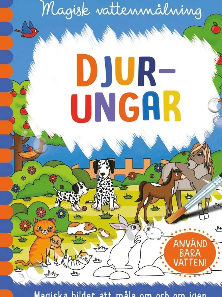 I denna magiska vattenmålarbok kan du skapa bilder på olika söta djurungar. Allt du behöver för att färglägga bilderna är vatten. När bilderna torkat kan du måla dem om och om igen. Boken innehåller roliga fakta och massor av bilder att färglägga. Det finns också tomma sidor där du kan öva på dina nya kunskaper. Skriven av Jenny Copper Illustrerad av Rachael McLean