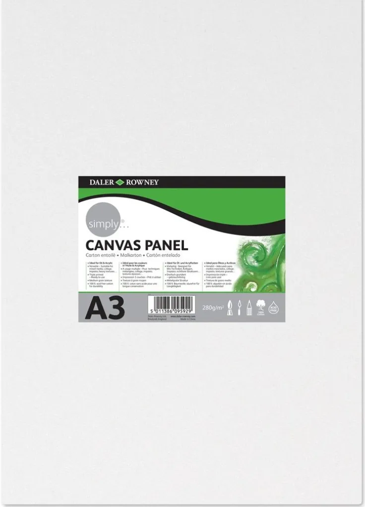 Daler-Rowney Simply dukar och panåer har en medium strukturerad, 250 g syrafri sträckt duk. Duken är trippel belagd, d.v.s. grunderad tre gånger, och erbjuder en kvalitetsyta som är tålig och redo att användas för både olja och akryl. Finns i flera former och storlekar. Simply dukar och panåer är mångsidiga och lämpar sig för blandade medier, collage, impasto och tunga strukturer.-100% bomull 250gsm duk-Häftad på baksidan-Trippel belagda-Gulnar inte med åldern-Mångsidig: lämpliga för blandade medier, collage, impasto och tunga strukturer