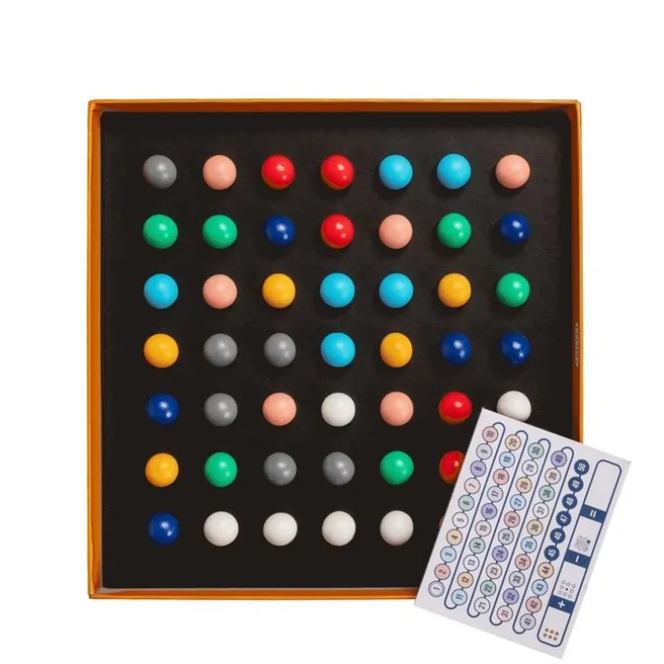 Detta är ett extraordinärt spel, alldeles ljudlöst. Spelarna ska gruppera slumpmässigt placerade träkulor per färg på så få drag som möjligt. Man spelar i turordning och tillsammans men utan att säga ett ord och utan att med säkerhet veta hur medspelarna tänker. Tystnad. Fokus. Spänning. Tillverkat i Finland. Regler på svenska, finska, danska, norska, franska, tyska och engelska. 1-4 spelare, 10 min, 8+