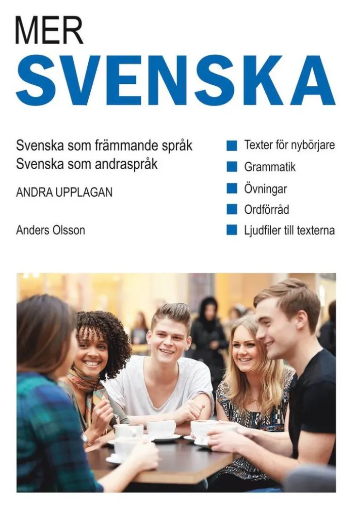 Mer svenska är en bok för nybörjar- och mellannivå med texter, grammatik, övningar och ordlistor. Den passar för nivå A1, A2 och B1. Den andra omarbetade upplagan är utökad med bland annat ett stort antal nya dialoger, mer fakta och fler övningar. Boken består av två delar. Den första delen är en sammanhängande berättelse i 20 kapitel om några studenter i Göteborg. Texterna börjar från grunden med presentation och handlar senare om till exempel familj och vänner, studier, fritid, planer och drömmar. Texterna handlar också om vardagliga teman som att träffas på ett kafé, hälsa på hos någon, planera en helg, gå på en konsert, gå på restaurang, gå till läkaren och åka på semester. Till varje text finns övningar, extra dialoger och grammatik. Den andra delen innehåller mer grammatik och fler övningar. Här finns också systematiska listor över till exempel substantiv, verb och adjektiv. Också prepositioner, pronomen, tidsuttryck och ordföljd har egna kapitel. Sist i boken finns en avdelning med bland annat räkneord, lite geografi, lite Sverigefakta, blandade övningar samt facit till alla övningar. Mer svenska kan användas i grupp eller för självständiga studier. Den kan användas separat eller tillsammans med andra böcker. Texterna finns inlästa på www.utbildningsstaden.se