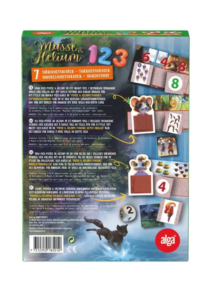Välkommen in i siffrornas magiska värld tillsammans med Musse och Helium. Här blir lärandet både enkelt och roligt, när ni ska samla på er rätt siffror för att fylla brickan. Barnen kan både spela och rätta själv med hjälp av den hemliga djurstigen som är spelets facit. Låt Musse och Helium göra siffror till en lek!