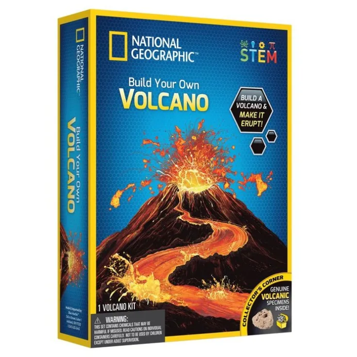Bygg en vulkan och låt den få ett utbrott! Kitet innehåller: gips och vulkanform, färg och pensel, 3 vulkanprover, utbrottspulver, instruktions-guide