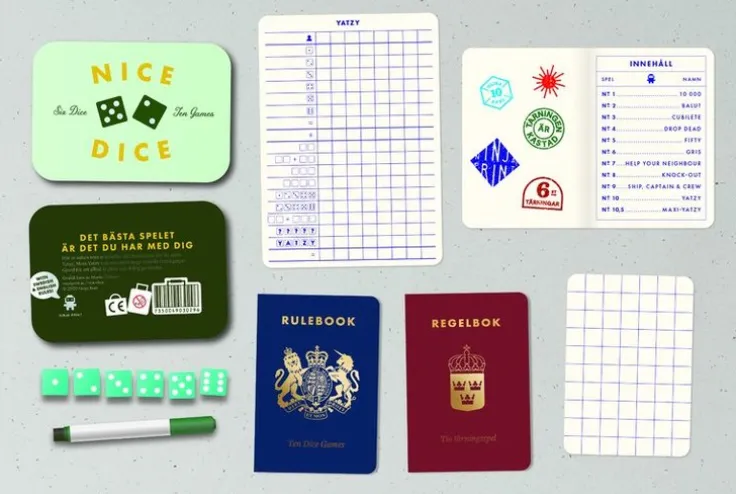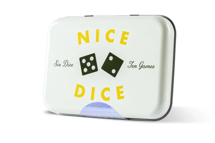 Det bästa spelet är det du har med dig.Här är asken som innehåller allt du behöver för att spela Yatzy, Maxi-Yatzy och nio andra noga utvalda tärningsspel. Gjord för att alltid få plats och aldrig gå sönder. Nice Dice är tryckt på FSC-märkt papper från ett ansvarsfullt skogsbruk. Innehåller regler på svenska och Engelska till spelen 10 000, Balut, Cubilete, Drop Dead, Gris, Help Your Neighbour, Knock-Out, Ship, Captain & Crew, Yatzy och Maxi-Yatzy.