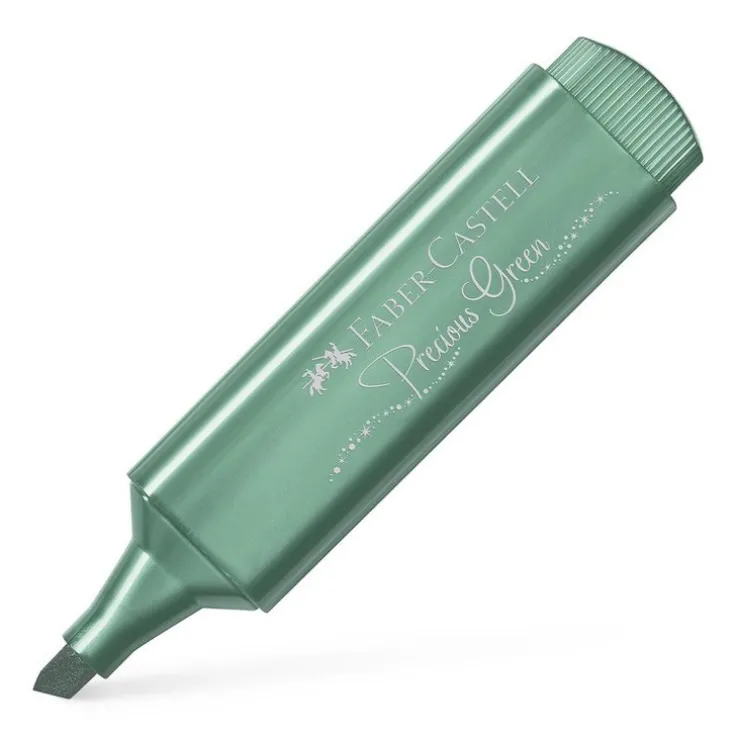 Textliner 46 med metallic effekt, för markering på papper, ej täckande, vattenbaserat grönt bläck, bör förvaras horisontellt.