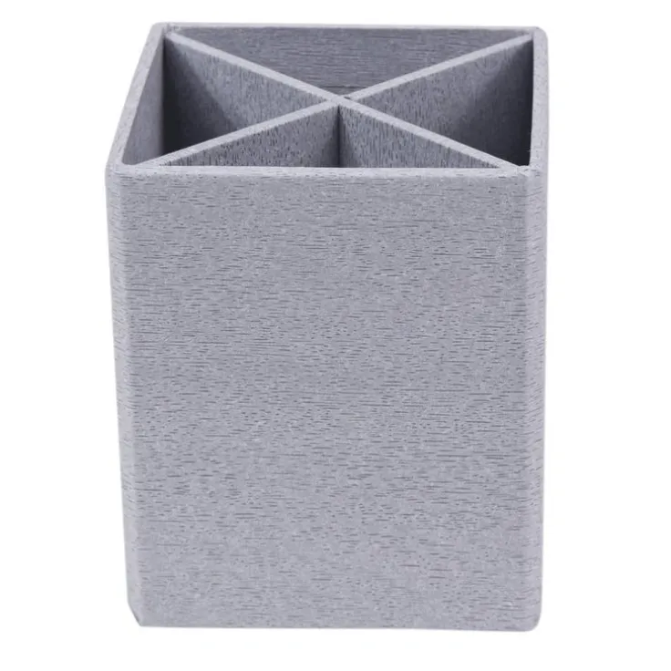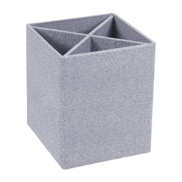 Pennburken Penny från Bigso. Utformad med fyra fack för enkel sortering av dina pennor och övrigt på skrivbordet. Kommer i modernt träimiterat papperslaminat i grå ek. Finns i flera färger och material. Mått: 8,5×8,5x10cm.
