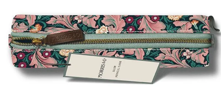 Pennfodral i läderimitation. Fodrat med nylon i matchande färg. Kraftig dragkedja med präglat grepp. Pennfodralet är i cylinderform och perfekt för pennor eller penslar.Mönstret är skapat av William Morris.