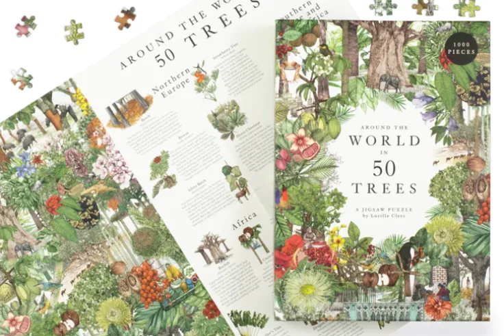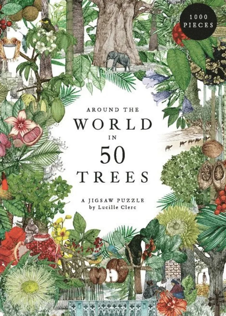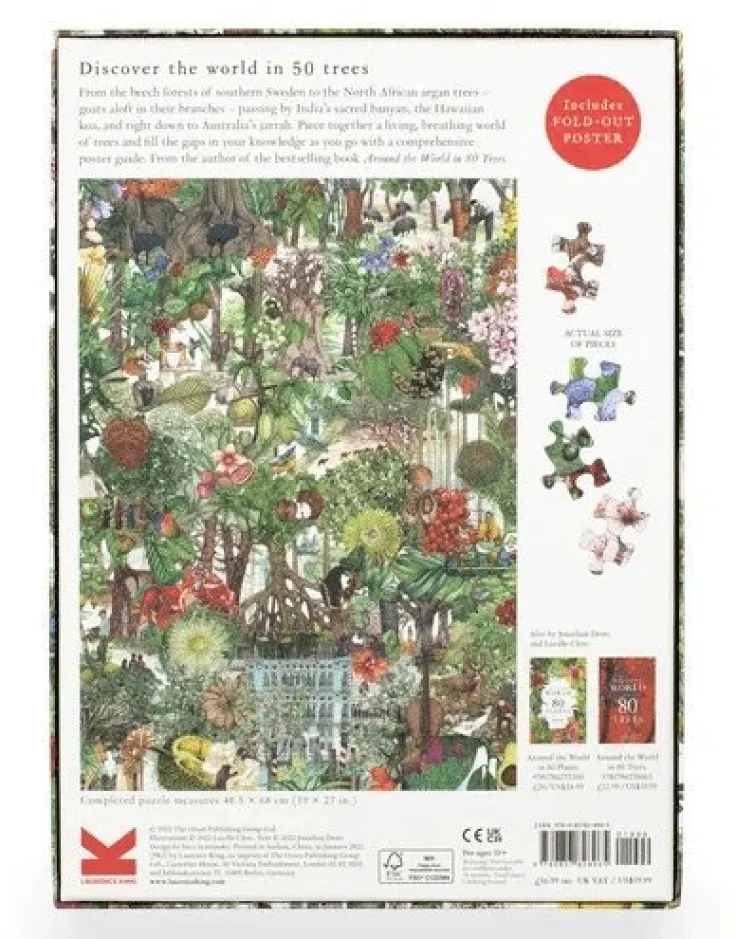 Det här är ett 1000-bitars pussel utöver det vanliga! Fantastiska illustrationer av träd från hela världen i en spännande kombination. Du bjuds in i en tät skog med 50 olika trädarter från södra Sverige, via Indien, Hawaii, Australien till norra Afrikas argan träd. Det kommer med en stor utvikbar plansch med bilder på varje träd och med beskrivning och information. I pusslandet får man resa med illustratören Lucille Clerc och trädexperten och författaren Jonathan Drori på deras resa runt jordens fantastiska skogar. Pusselmotivets mått: 49 x 68 cmAskens mått: 32 x 23 cm