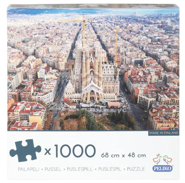 Ett 1000 bitars pussel med ett motiv av Barcelona från ovan, med Gaudís Sagrada Família i förgrunden. Pusslet är tillverkat i returkartong och det lagda pusslets storlek är 68 x 48 cm. Tillverkat i Finland. Säljs endast hos Akademibokhandeln.