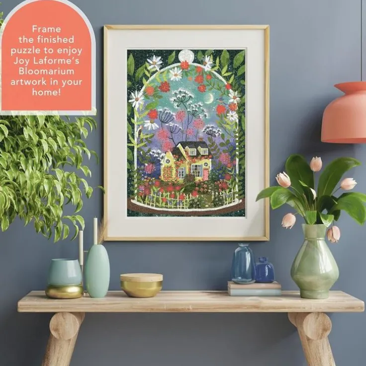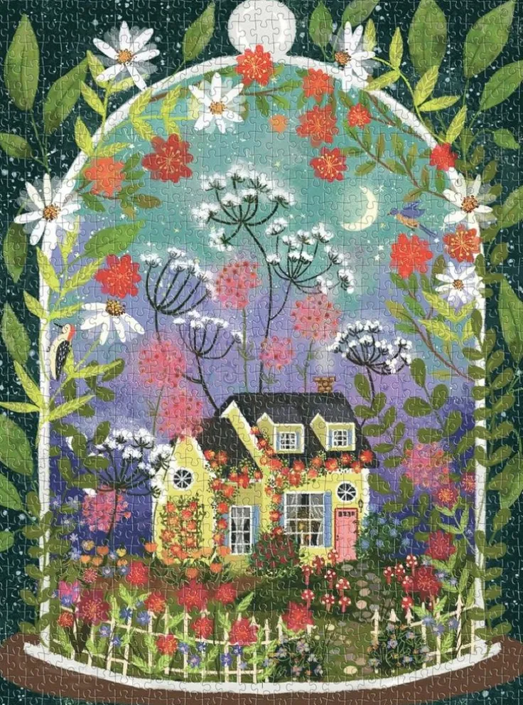 Pussel med 1000 bitar med ett charmigt motiv av en liten stuga inbäddad i ett terrarium fullt av liv och blomsterprakt. Här får du lägga ett pussel som bjuder på en magisk scen där färgstarka växter, svampar och prästkragar lyser upp omgivningen, vackert belysta av månskenet.Innehåller plansch med pusslets motiv.Praktiskt taget inget pusseldamm.Illustratör är Joy Laforme.Askens storlek är 210 x 286 x 51 mmPusslets storlek är 508 x 686 mmPusslets kartong består av 90 % återvunnet papper. Förpackningen består av 70 % återvunnet papper och är ansvarsfullt tillverkad av FSC-certifierat papper. Tryckt med giftfria färger.