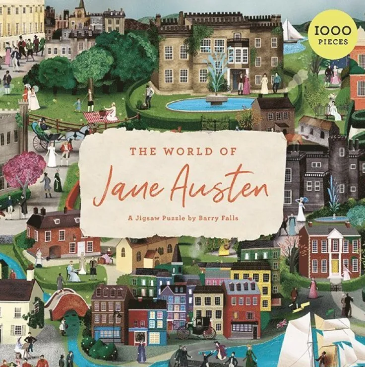Pussel med 1000 bitar i stadig kvadratisk ask. Innehåller en utvikbar affisch med pusslets bild och med en beskrivning av alla karaktärer och deras historier. Sätt ihop världen av Jane Austen i detta spännande pussel inspirerat av den produktiva författarens liv och verk. Med ett brett urval av Jane Austens samtida karaktärer kan du ta en tur genom Austens värld, från Derbys böljande kullar, via Hampshire och Lyme Regis, till Baths gyllene silhuett medan du bygger pusslet. Du kan bland andra hitta Mr Darcy hemma i Pemberley eller se Mr Knightly njuta av en promenad i trädgården, samt många fler bekanta karaktärer gömda bland Austens kollegor.Pusslet mäter 68 x 48,5 cm när det är klart.