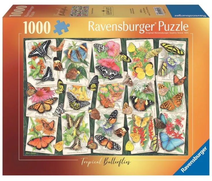 Tropical Butterfly 1000p Upptäck den perfekta passformen! Ravensburger har något för alla vuxna, pussel från 500 bitar till världens största med 40 320 bitar – och allt däremellan! Njut av Ravensburger-kvalitet med denna familjevänliga aktivitet! Ålder 14+Kontakt:Ravensburger Verlag GmbHP.O. Box 2460, 88194 Ravensburghttps://www.ravensburger.com