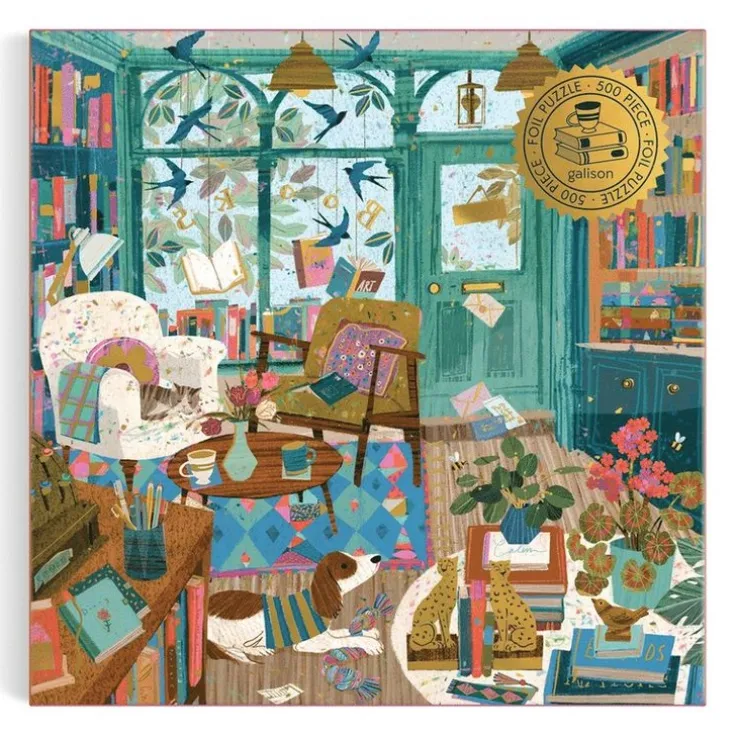 Pussel med 500 bitar. Pusselbitarna har guldfolierade detaljer som bidrar till den fina pusselkänslan. Motivet som växer fram är en mysig bokhandlare, med läsfåtöljer, bokhyllor längs väggarna och en tillgiven hund på golvet.Asken innehåller en plansch med pusslets hela motiv.Illustratör är Victoria Ball.Askens storlek är 204 x 204 x 50 mmPusslets storlek är 508 x 508 mm Pusslets kartong består av 90 % återvunnet papper. Förpackningen består av 70 % återvunnet papper och är ansvarsfullt tillverkad av FSC-certifierat material. Tryckt med giftfria färger.