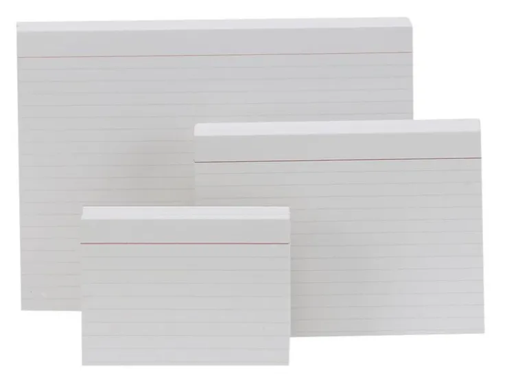 Vita linjerade skrivkort med röd rubriklinje. A7 liggande.