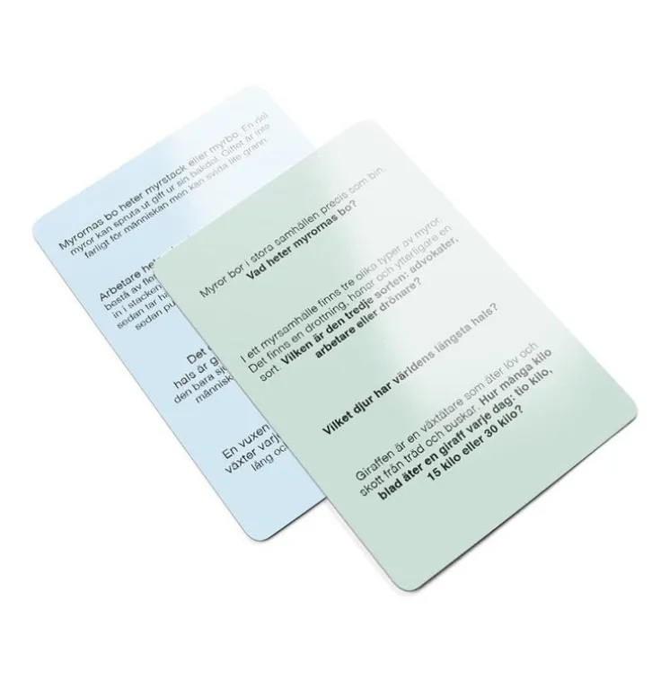Innehåll: 380 frågor på 95 spelkort