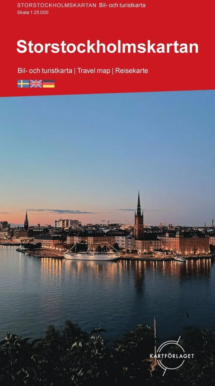 Praktisk karta för den som vill hitta rätt i Stockholmsregionen. Visar vägnamn, cykelleder, badplatser, simhallar, parklek, naturreservat och mycket mer. Täckningsområde från Sollentuna/Täby i norr till Tumba/Huddinge i söder. Skala 1:25 000.