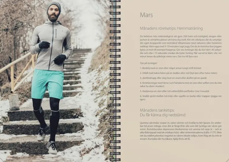Att börja med nya, sunda vanor är enkelt, det svåra är att behålla dem. Med en smart planering ökar dina chanser att lyckas. I denna träningskalender hittar du ett program för dig som vill ha en allsidigt tränad kropp med en kombination av löpning och styrketräning och ett program för dig som vill komma igång med meditation och andningsträning så att den mentala träningen blir en naturlig del av din vardagsrutin. Båda programmen är signerade löpcoachen och PT:n Jenny Sunding. Hon ger också hälsosamma tips som håller inspirationen vid liv hela året. Det finns självklart också plats för veckoplanering, på varje uppslag finns dels en kalendersida, dels en aktivitetssida. Gör medvetna val för din hälsa och upptäck hur energin och orken i din vardag ökar!Kalender 2025 från Burde. Format: A5. Layout: Liggande. Vecka/uppslag. Kalendarium: 2024-12-23 – 2026-01-04. Omslag: Kartong med sammetslen yta. Spiralbunden. Detaljer: Gummiband. Pappersficka. Innehåll: Årsplaner. Antal sidor: 160. Miljöinformation: FSC®.