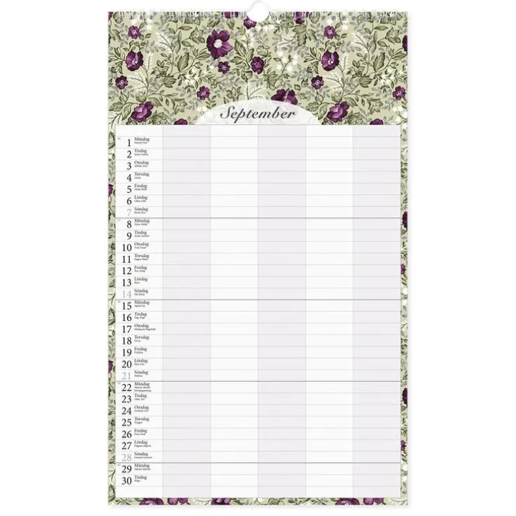Familjekalender 2025-26 med 5 kolumner och svensk design, den perfekta hjälpen för att få fullständig kontroll över ditt och din familjs liv. Med fem kolumner per månadsblad ger den dig en blixtsnabb överblick över alla dina aktiviteter under året. Missa aldrig en viktig deadline eller en händelse. Kalender är inte bara praktisk, den är dessutom så vacker med sin romantiska design. Oavsett om du hänger den i köket, hallen eller i vardagsrummet kommer den att vara en hjärtevärmande prydnad på din vägg. Vi bryr oss om miljön, och därför använder vi oss av FSC-certifierat papper i produktionen av denna kalender. Du kan vara trygg med att varje blad du skriver på kommer från ett hållbart skogsbruk och bidrar till bevarandet av våra värdefulla naturresurser. Mått 25×41 cm