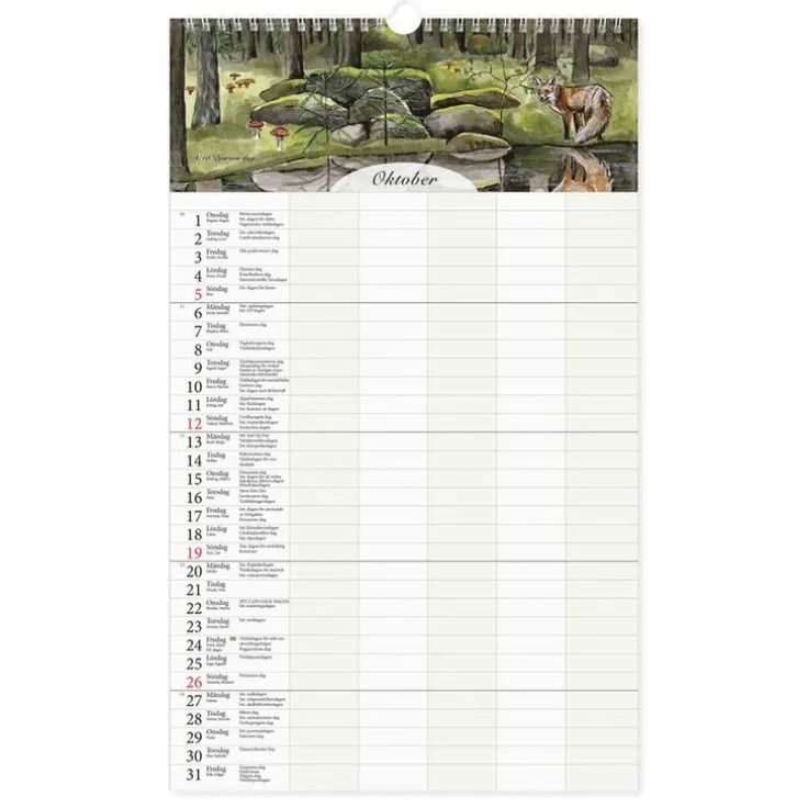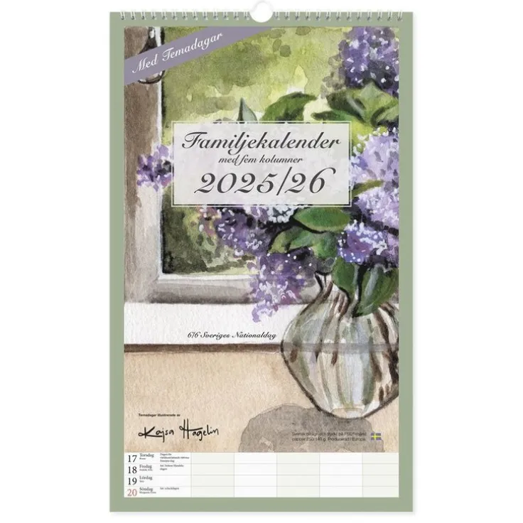 Familjekalender 2025-26 med temadagar. Kalendern har 5 kolumner och svensk design, och är den perfekta hjälpen för att få fullständig kontroll över ditt och din familjs liv. Med fem kolumner per månadsblad ger den dig en blixtsnabb överblick över alla dina aktiviteter under året. En rolig detalj är temadagarna, till exempel Chokladens dag! Missa aldrig en viktig deadline eller en händelse. Kalendern är inte bara praktisk, den är dessutom en härlig glädjespridare med sina charmiga illustrationer av Kajsa Hagelin. Oavsett om du hänger den i köket, hallen eller på kontoret kommer den att pryda din vägg. Vi bryr oss om miljön, och därför använder vi oss av FSC-certifierat papper till denna kalender och producerar den i Europa. Du kan vara trygg med att varje blad du skriver på kommer från ett hållbart skogsbruk och bidrar till bevarandet av våra värdefulla naturresurser. Mått 25×41 cm.