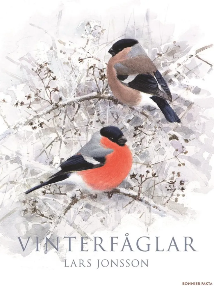 Fågelfröer, talgbollar och foderautomater. Många är vi som matar fåglar på vintern, det är faktiskt en mer utbredd sysselsättning än vad man kanske i förstone tror. Uppskattningsvis är det en halv miljon svenska hushåll som på något sätt utfodrar fåglar under vinterhalvåret.Det här är en bok om våra vanligaste vinterfåglar, det vill säga de fåglar som finns i vår närhet under de kallare månaderna. Det är på vintern som fåglarna blir mer synliga och söker sig närmare oss människor för att söka efter föda i våra trädgårdar. Arterna är få och låter sig beskådas på nära håll, gärna från köksfönstret eller favoritfåtöljen vid brasan. För det är i mötet man lär känna fåglar och deras beteende och särdrag. Så upplever i alla fall konstnären, författaren och ornitologen Lars Jonsson det. Och här får vi möta alla de vanliga arter som flockas kring fågelbordet. Uppkäftiga blåmesar och tjattrande pilfinkar, riviga nötväckor som sprätter fågelfrö omkring sig. Eller den alldagliga grönfinken som finns där men inte gör så stort väsen av sig. Alla är de småfåglar som alla flyr fältet då en sparvhök drar igenom trädgården. I Vinterfåglar skildrar fågelkonstnären Lars Jonsson i text och fantastiska akvareller fyrtio vanliga arter, alla i en personligt hållen stil. Även om man med boken givetvis lär sig identifiera fåglarna så handlar det i lika hög grad att berätta om dem på ett sätt där fältbestämning samsas med kulturhistoria och personliga iakttagelser.