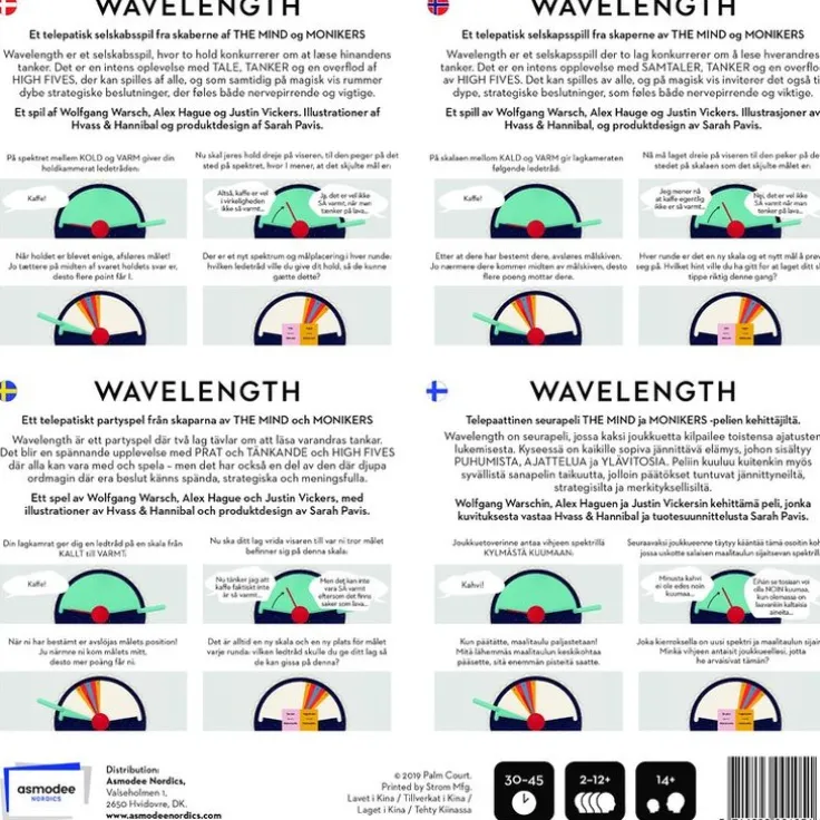I Wavelength turas två lag om att tävla om att vara på samma våglängd som sina lagkamrater. Detta gör man genom att vrida en ratt dit de tror att spelledaren i sitt lag (som skiftas var tur) försöker ge en ledtråd från ett kort med ett par binärer (som: Jobb – Karriär, Grov – Smidig, Fantasi – Sci-Fi, Sorglig Sång – Lycklig Sång, etc) som dras under lagets turomgång. Till exempel, om kortet den här omgången är VARM-KALLT och bullseye är något närmare den ”kalla” sidan av centrumet, måste spelledaren ge en ledtråd någonstans i den regionen. Kanske ”sallad”? Efter att spelledaren i laget har gett sin ledtråd diskuterar deras lag var de tror att bullseye ligger och vrider ratten till den platsen i det spektrumet. Ju närmare mitten av bullseye laget gissar, desto fler poäng får de!