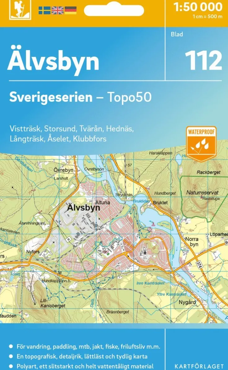 Sverigeserien är en kvalitetskarta som är gjord för att användas! Aktuellt kartdata är hämtat från Lantmäteriet och den är tryckt på Polyart som är helt vattentåligt och slitstarkt. Det mjuka materialet tål att vikas om och om igen. Den klarar både vinterns och sommarens ibland utmanande väder i Sverige. Kartorna har en utförlig teckenförklaring på svenska, engelska och tyska.