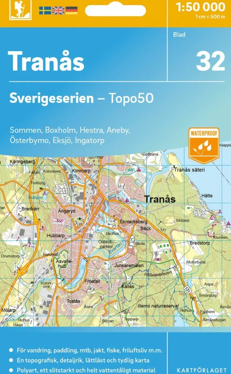 Sverigeserien är en kvalitetskarta som är gjord för att användas! Aktuellt kartdata är hämtat från Lantmäteriet och den är tryckt på Polyart som är helt vattentåligt och slitstarkt. Det mjuka materialet tål att vikas om och om igen. Den klarar både vinterns och sommarens ibland utmanande väder i Sverige. Kartorna har en utförlig teckenförklaring på svenska, engelska och tyska.